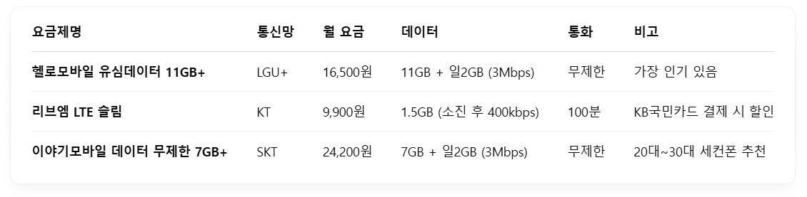 📊 2025 상반기 알뜰폰 요금제 비교표